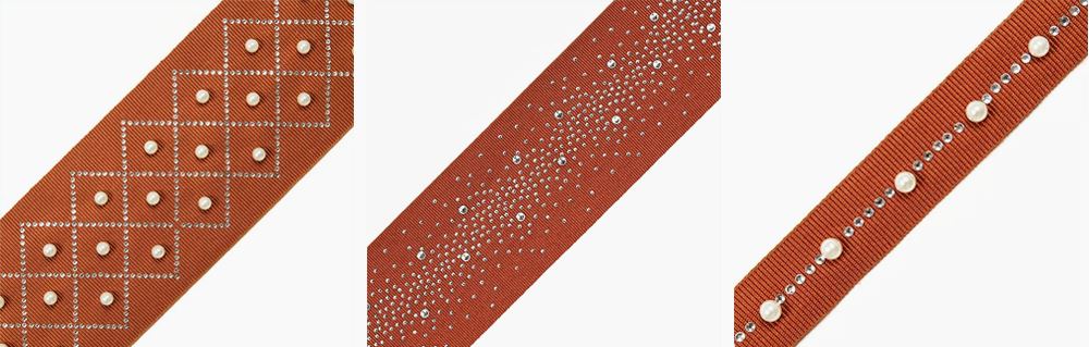 這三款帶子使用閃亮的奧鉆搭配珍珠,